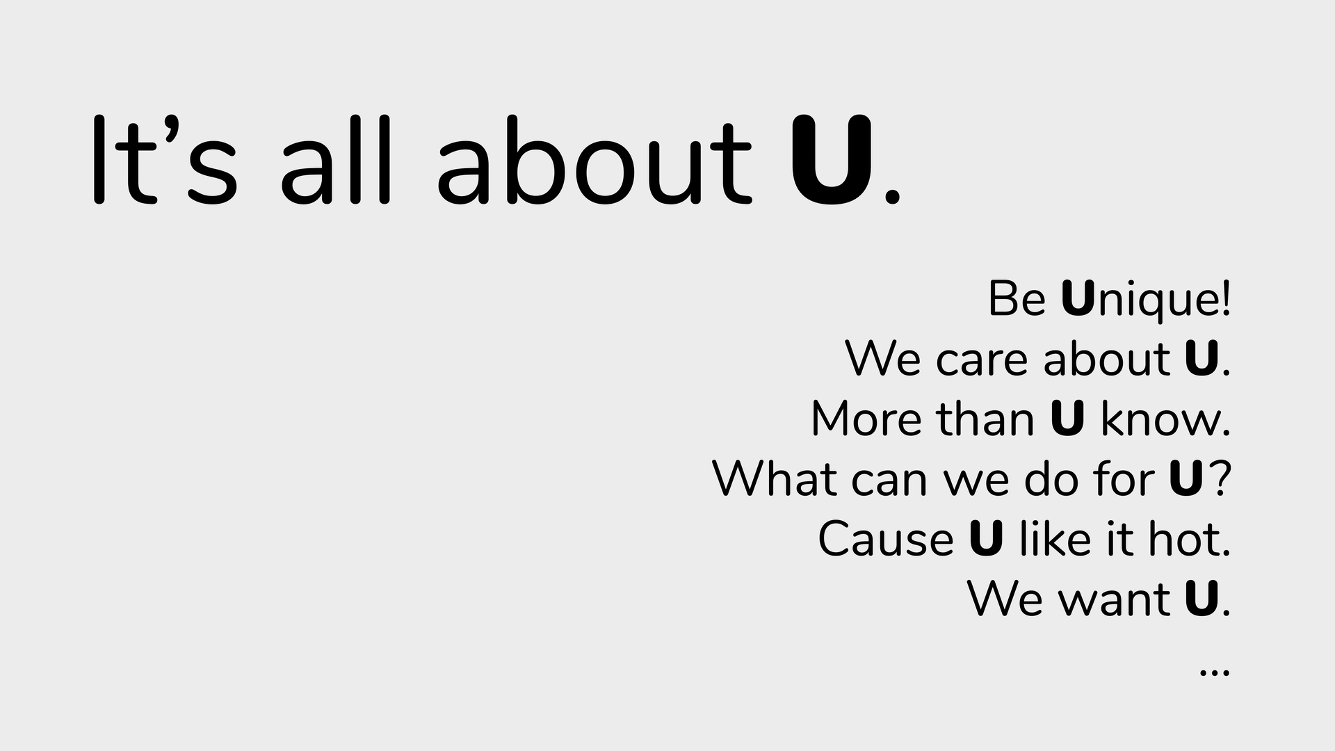 In den bisherigen WUM Logos wurde stets der Buchstabe „U“. hervorgehobenen. In Anlehnung daran betonen wir das „U“ in unserem Claim und verwenden es anstelle des Wortes „you“.